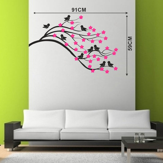 Homexa Decor | Branches With Birds and Flower Design Wall Sticker (Size 91 x 59 cm)