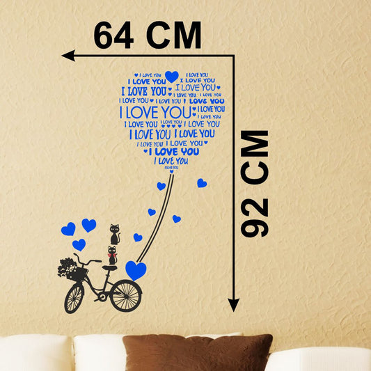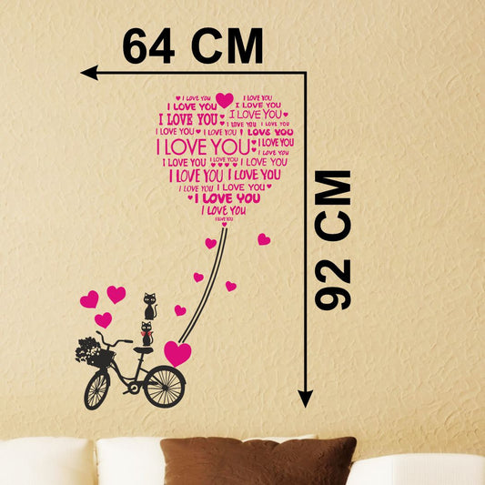 Homexa Decor | Bicycle With Cat and Heart Design wall Sticker Sticker (Size 64 x 92 cm)