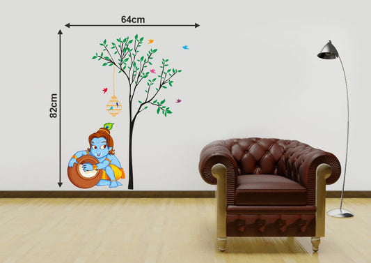 Homexa Decor | Beautiful Tree With Shree Krishna Combo Design Wall Sticker (Size 64 x 82 cm)