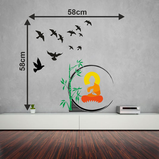 Homexa Decor | Birds and Buddha Combo Design Wall Sticker (Size 58 x 58 cm)