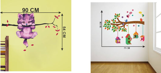 Homexa Decor | Beautiful Tree-Cat-Birds Combo Design Wall Sticker (Size 77 x 58 cm)
