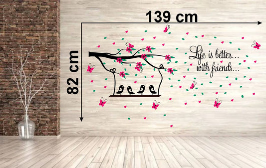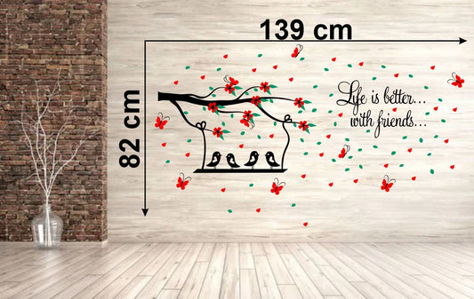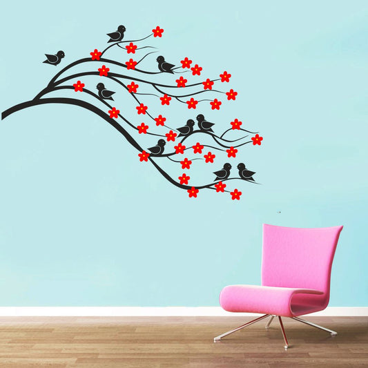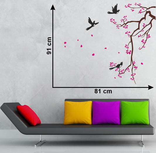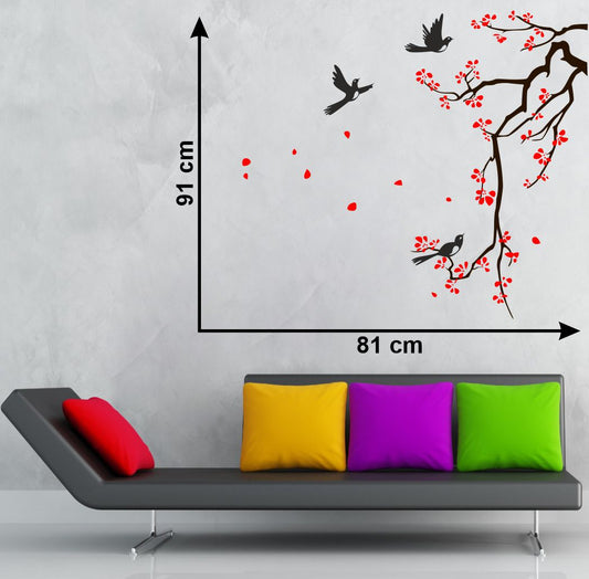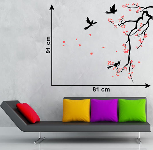 Homexa Decor | Branches With Birds and Flower Design Wall Sticker (Size 91 x 81 cm)
