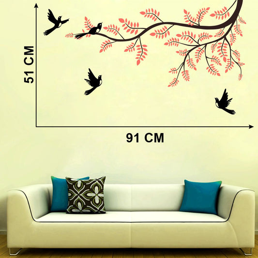 Homexa Decor | Branches With Birds and Leaf Design Wall Sticker (Size 91 x 51 cm)