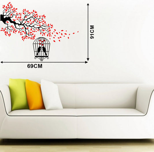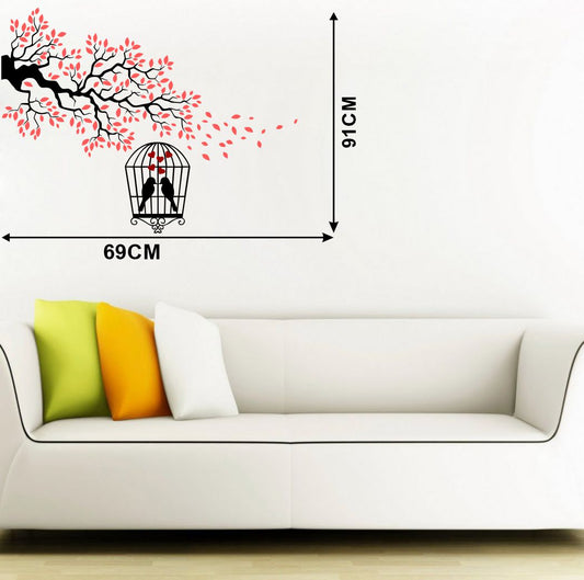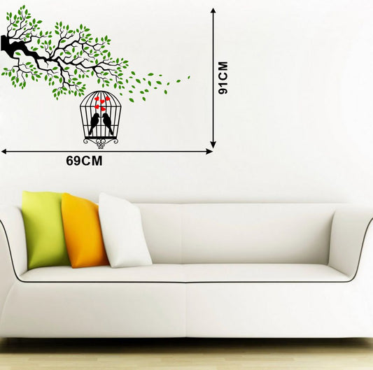 Homexa Decor | Branches With Birds and Leaf and Cages Design Wall Sticker (Size 69 x 91 cm)