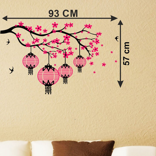 Homexa Decor | Branches With Birds and Flower With Hanging Cages Design Wall Sticker (Size 117 X 85 cm)