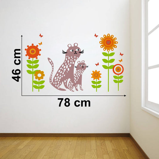 Homexa Decor | Cat with Flower and Birds Design Wall Sticker (Size 78 x 46 cm)
