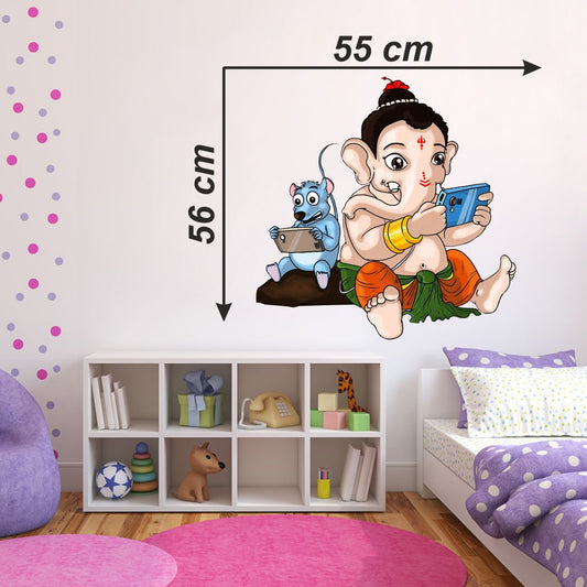 Homexa Decor | Animated Ganesha & mouse with mobile Design Wall Sticker (Size 55x56 cm)
