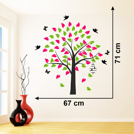 Homexa Decor | Colorful Tree and Hanging Cage-Birds Design Wall Sticker (Size 67 x 71 cm)