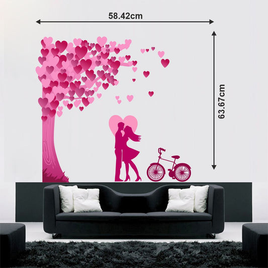 Homexa Decor | Romantic Couple Under The Heart Leaves Tree and Love with Bicycle Design Wall Sticker (Size 58 x 64 cm)