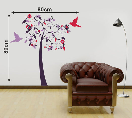 Homexa Decor | Tree With Flower and Flying Birds Wall Sticker (Size 80 x 80 cm)
