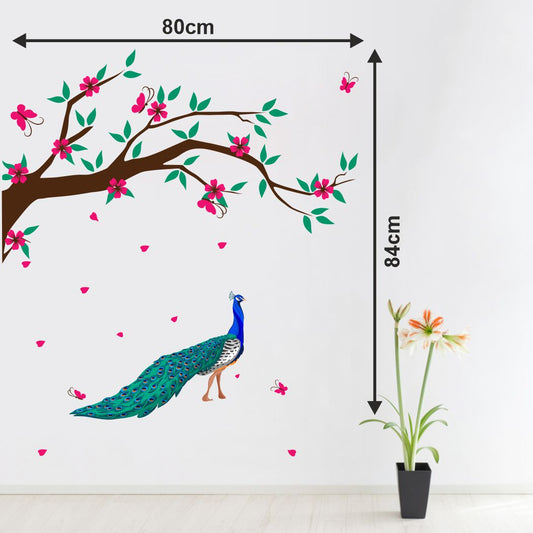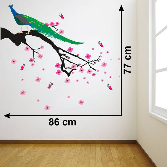 Homexa Decor | Tree With Flower and Peacock Design Wall Sticker (Size 86 x 77 cm)