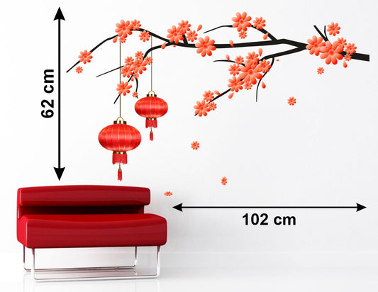 Homexa Decor | Tree With Flower and Lamp Design Wall Sticker (Size 62 x 102 cm)