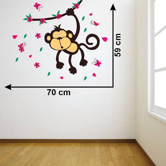 Homexa Decor | Tree With Monkey and butterfly Wall Sticker (Size 70x59 cm)