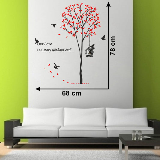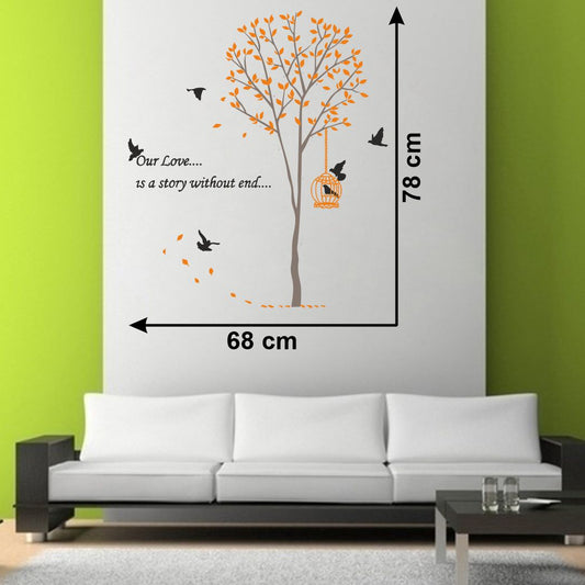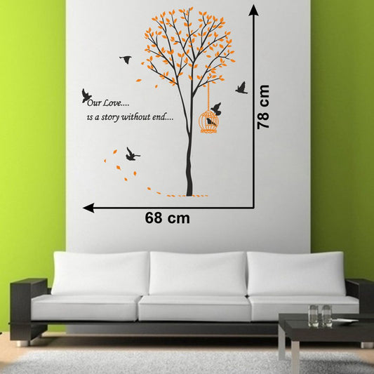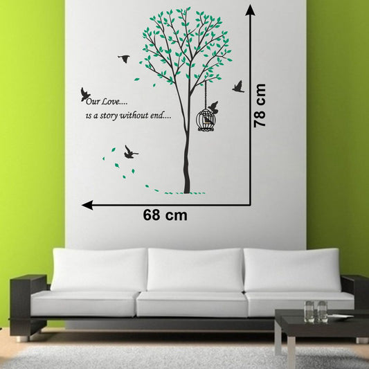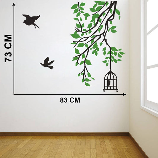 Homexa Decor | Tree With Leaf and Hanging cage Design Wall Sticker (Size 83 x 73 cm)