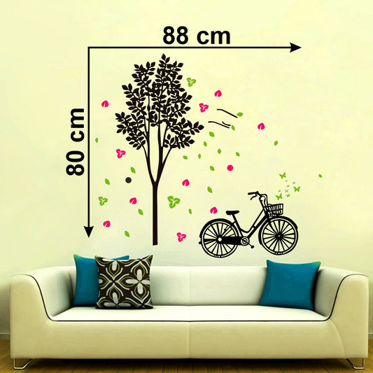 Homexa Decor | Tree With Leaf and Cycle Wall Sticker (Size 88 x 80 cm)