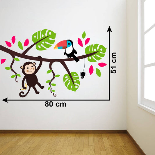Homexa Decor | Tree With Monkey and Birds Wall Sticker (Size 80 x 51 cm)
