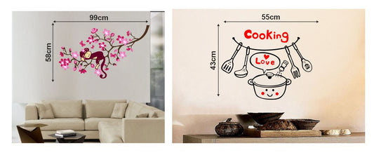 Homexa Decor | Tree With Monkey and Kitchen Cooking Design Wall Sticker (Size 97 x 55 cm)