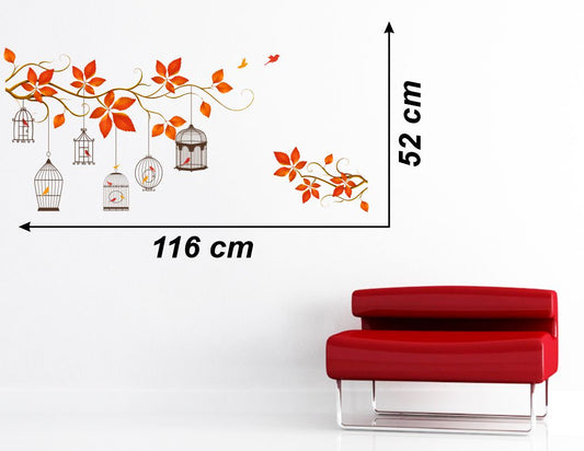 Homexa Decor | Tree With Leaf and Cage Wall Sticker (Size 56 x 38 cm)