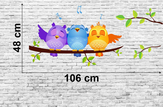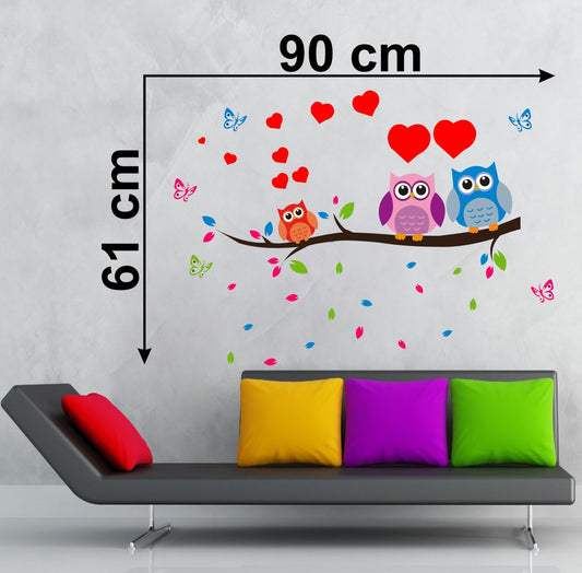 Homexa Decor | Tree With three Owl Wall Sticker (Size 106 x 48 cm)