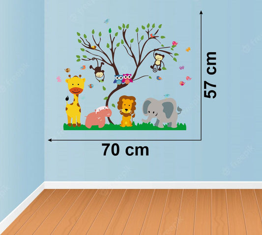 Homexa Decor | Jungle Cartoon Animals Wall Sticker (Size 70x57 cm)