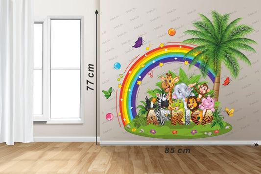 Homexa Decor |All Animals And Rainbow With Tree Design Wall Sticker Size - (85 x 77) Cm