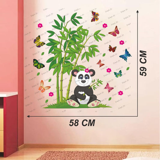 Homexa Decor | Beautiful Playing Pandas and Butterfly Design Wall Sticker (Size 58X59 cm)