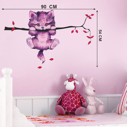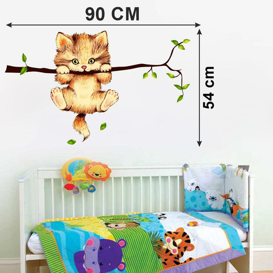 Homexa Decor | Tree With Hanging Cat Design Wall Sticker (Size 90 x 54 cm)