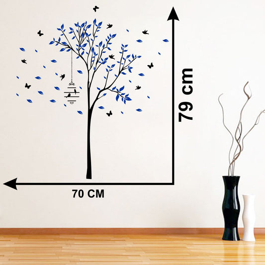 Homexa Decor | Tree With Colorful Leaf and Birds, Butterfly Design Wall Sticker (Size 70 x 79 cm)