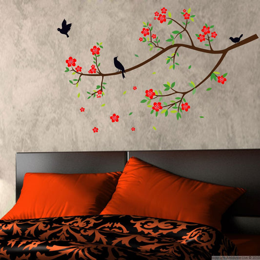 Homexa Decor | Tree With Flower, Leaf and Birds Wall Sticker (Size 70 x 85 cm)