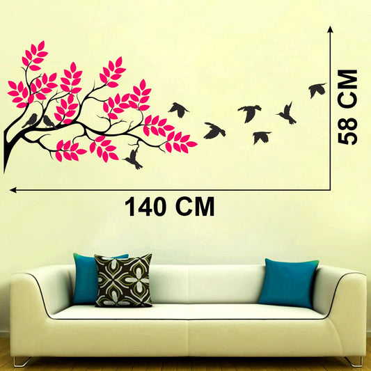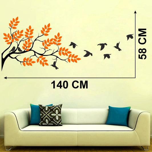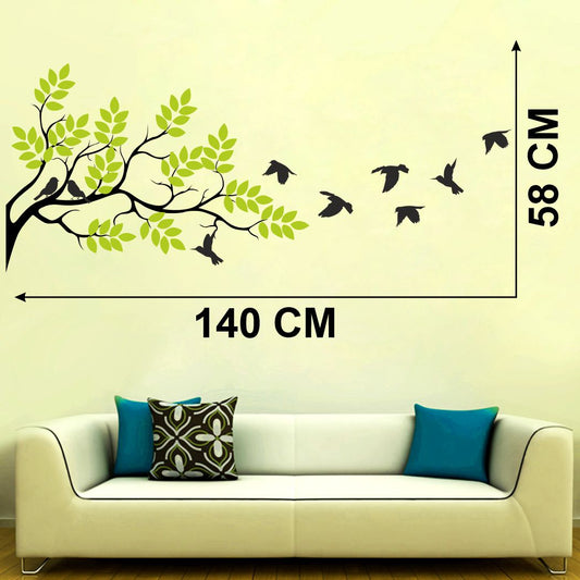 Homexa Decor | Tree With Leaf and Birds Wall Sticker (Size 140 x 58 cm)