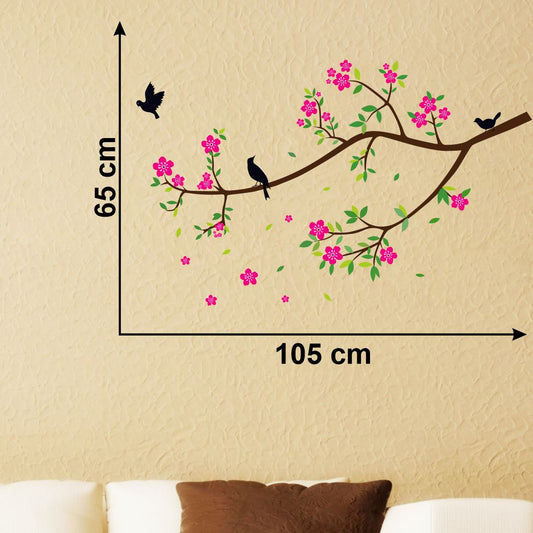 Homexa Decor | Tree With Flower, Leaf and Birds Wall Sticker (Size 70 x 85 cm)