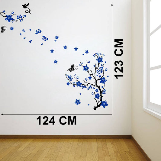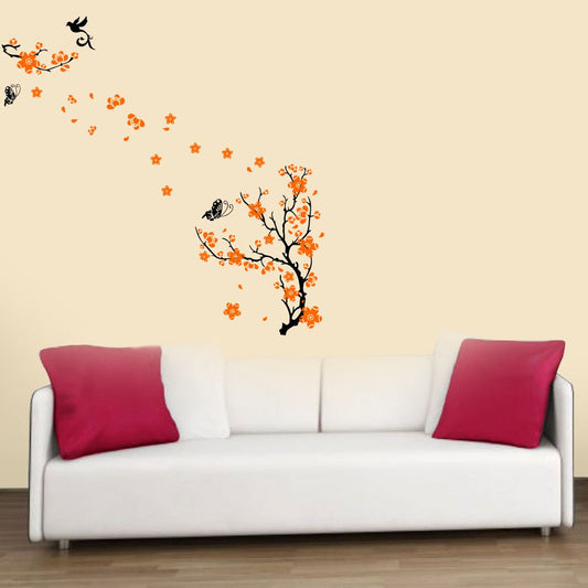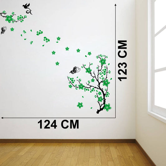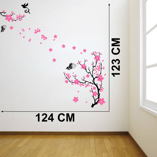 Homexa Decor | Tree With Flower and Butterflies Design wall Sticker Sticker (Size 124 x 123 cm)