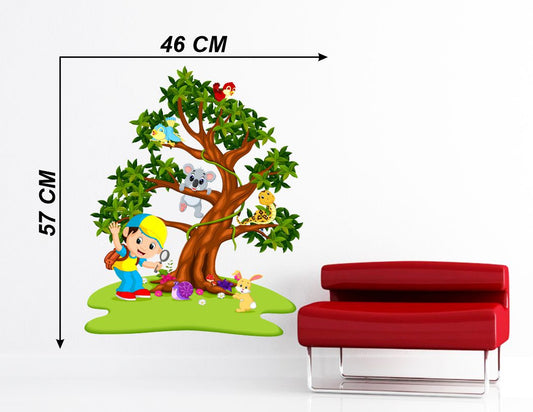 Homexa Decor | Tree With Animal and Kids Design Wall Sticker (Size 46x57 cm)