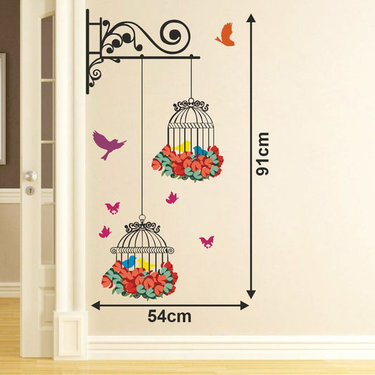Homexa Decor | Hanging Cange and Birds Design Wall Sticker (Size 54 x 91 cm)