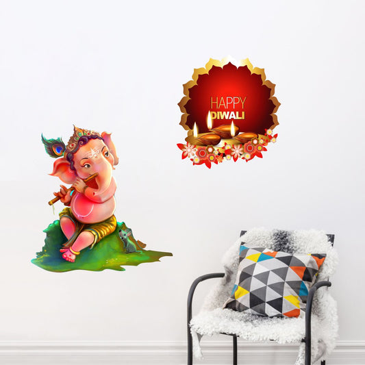 Homexa Decor | God of Ganesh-Happy Diwali Combo Design Wall Sticker (Size 58 x 42 cm)