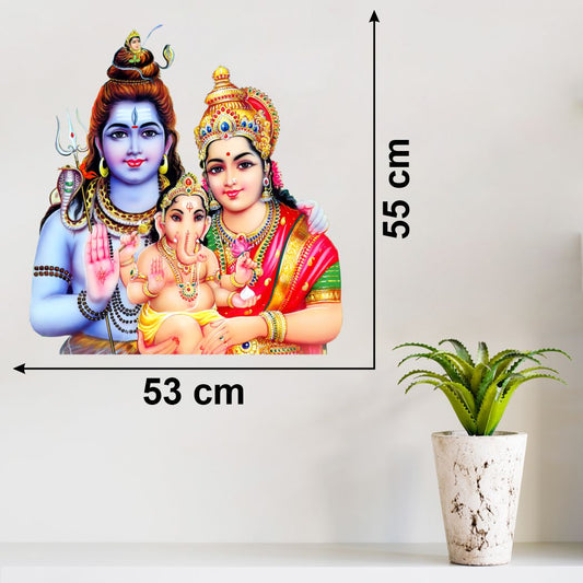Homexa Decor | Gods of Shiv Parvati Ganesh Ji Design Wall Sticker (Size 53 x 55 cm)