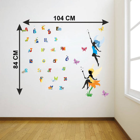 Homexa Decor | Flat Alphabets With Fairy Design Wall Sticker (Size 104 x 84 cm)