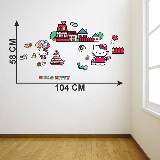 Homexa Decor | Cute Cat with Cupcake and Home Design Wall Sticker (Size 104 x 58 cm)
