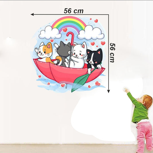 Homexa Decor | Cute Cat With Umbrella and Rambo Wall Sticker (Size 56 x 56 cm)