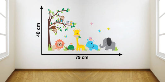 Homexa Decor | Cute Animal With Tree Design Wall Sticker (Size 110 x 116 cm)