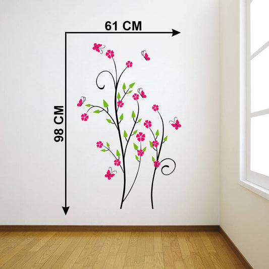 Homexa Decor | Flower Leaf Butterfly Design Wall Sticker (Size 61 x 98 cm)