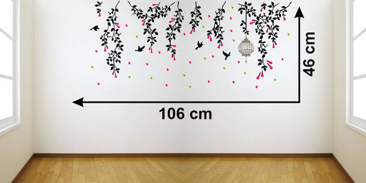 Homexa Decor | Flower With Leaf and Hanging cage Wall Sticker (Size 106 x 46 cm)
