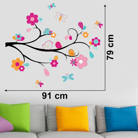 Homexa Decor | Tree With Flower Birds Wall Sticker (Size 91 x 79 cm)
