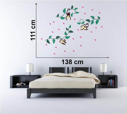 Homexa Decor | Hanging Monkeys Wall Sticker (Size 138 x 111 cm)