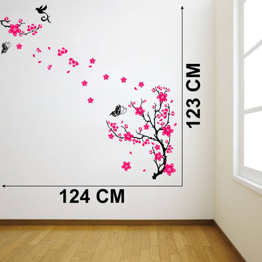 Homexa Decor | Tree With Flower and Birds Wall Sticker (Size 124 x 123 cm)