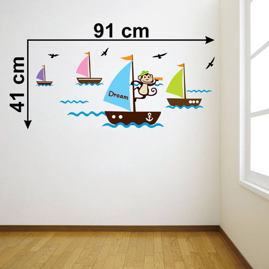 Homexa Decor | Monkey Boat Design Wall Sticker (Size 91 x 41 cm)