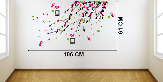 Homexa Decor | Flower Leaf Butterfly Design Wall Sticker (Size 106 x 61 cm)