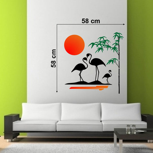 Homexa Decor | Crane With Tree and Sun Wall Sticker (Size 58 x 58 cm)