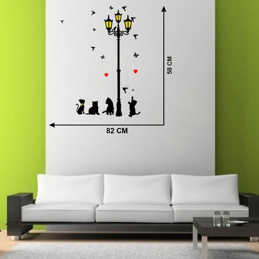 Homexa Decor | Cat With Lamp Birds and Butterfly Wall Sticker (Size 82 x 58 cm)
