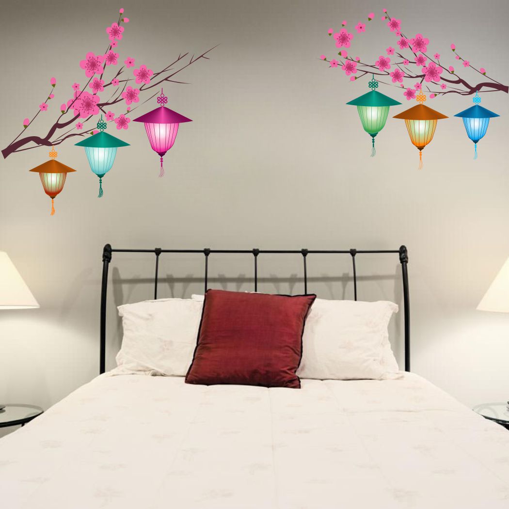 Homexa Decor | Tree With Lamp and Flower Design Wall Sticker (Size 89 x 53 cm)